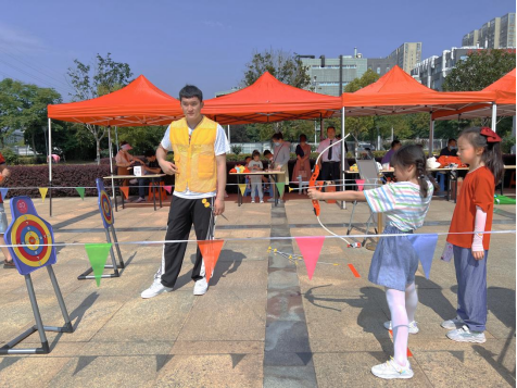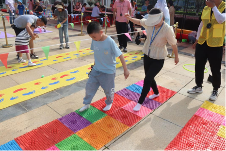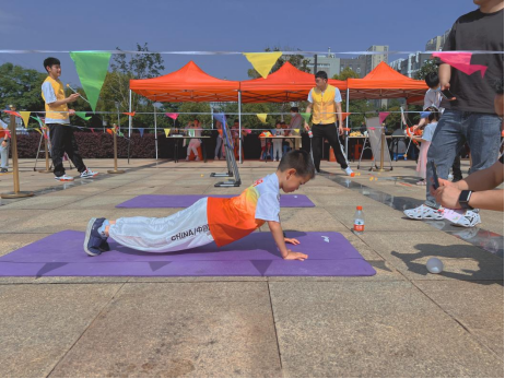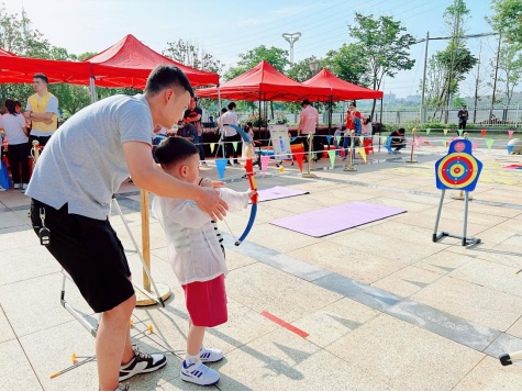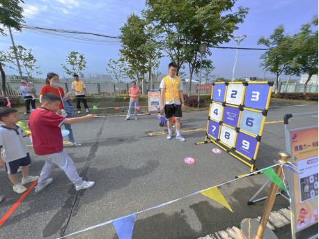 熱身完畢,小朋友們便在工作人員的指引下開始了玩游戲集印章活動,與家長一起進行游戲合作。百發(fā)百中、小小搬運工、手忙腳亂、愛的平板支撐、歡樂指壓板接力、飛盤九宮格等6個親子項目參與度高、互動性強,兼具娛樂性和挑戰(zhàn)性。