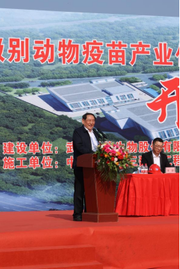 10月15日上午,武漢科前生物股份有限公司舉行開工儀式,正式啟動高級別動物疫苗產業(yè)化基地建設項目(動物生物安全實驗室),武漢東湖新技術開發(fā)區(qū)管委會副主任馮立、武漢國家生物產業(yè)基地建設服務中心建設處處長嚴興春、武漢國家生物產業(yè)基地建設服務中心建設處副處長劉曦出席活動,中國工程院院士、科前生物首席科學家陳煥春教授致辭并宣布開工。
