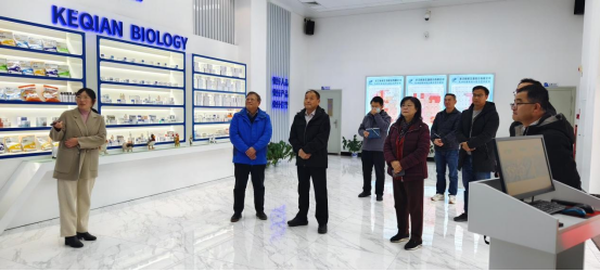 黃峰一行參觀了科前生物智能化GMP生產車間,公司總經理陳慕琳女士從公司發(fā)展歷程與人員結構、創(chuàng)新平臺和團隊建設、科技成果與創(chuàng)新方向等方面介紹了公司的發(fā)展情況。